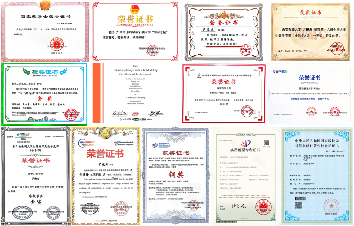 大学期间,他积极参与各类学科竞赛,在挑战中锻炼能力,在实践中检验真知。获得过包含中国国际大学生创新创业大赛国家级铜奖在内的多个竞赛奖项。竞赛不仅提升了他的团队协作与项目执行能力,也让他学会了如何在压力下高效解决问题,为后续科研打下了坚实的逻辑基础与实践素养。