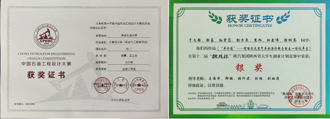 (1)第十四届中国石油工程设计大赛,全国三等奖;