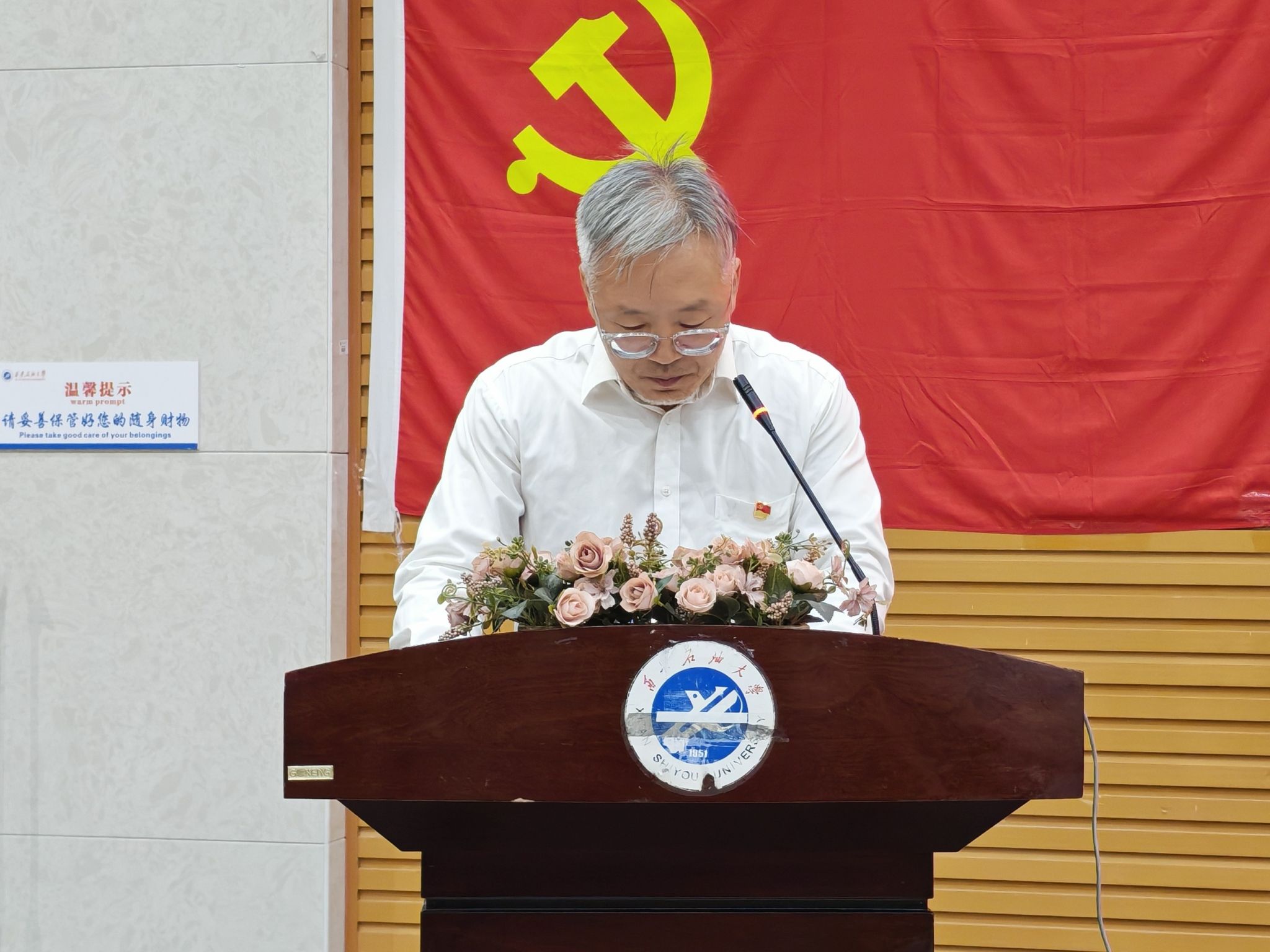 司马文龙在大会上讲话,他总结了石油工程学院过去一年党建工作取得突出成绩肯定了上一学年各学生支委和学生党建办公室的辛勤努力,并且对新一届支委和学生党建办公室提出了四点要求,一是坚持政治忠诚,做听党话、跟党走的大学生石油工程学院学生党员要深刻理解习近平总书记关于能源的饭碗必须端在自己手里的重要论述,将个人的石油梦融入国家能源安全的大潮流中。二是锤炼过硬本领,做立大志、成大才的大学生作为西安石油大学主干专业的学生,必须将理论学习与实践创新结合,夯实专业基础,在实践中提升创新能力。三是厚植服务情怀,做能吃苦、担重任的大学生。石油工程学院学生党员必须要牢记服务学院、服务同学的宗旨,在学风建设、志愿服务、日常生活中当好示范员、宣传员、联络员在学院的重要工作、重要时间节点做好服务员、主力军、攻坚队。四是弘扬优良作风,做守规矩、树正气的大学生。要严守政治纪律和政治规矩,在考风学风、网络言行、集体生活中发挥先锋模范作用,尤其要在科研诚信、学风建设中立标杆、作表率,以一身正气、两袖清风的品格擦亮石油工程学院学生党员底色。